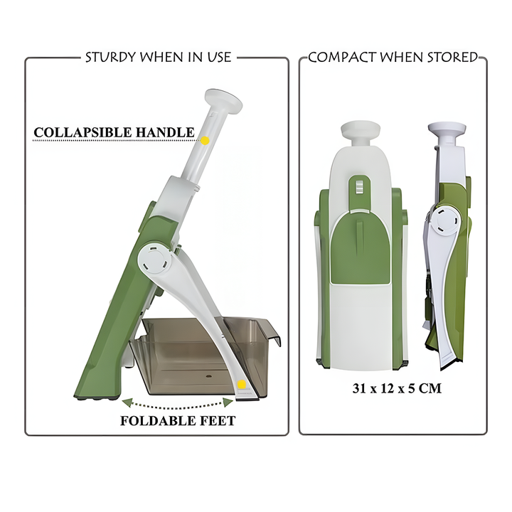 Slice, dice, and julienne with ease using this multifunctional vegetable cutter and slicer. Adjustable blades let you set the perfect thickness without changing tools. The retractable handle and folding bracket save space, while the detachable vegetable container is easy to clean. Perfect for quick meal prep and keeping your kitchen organized.
